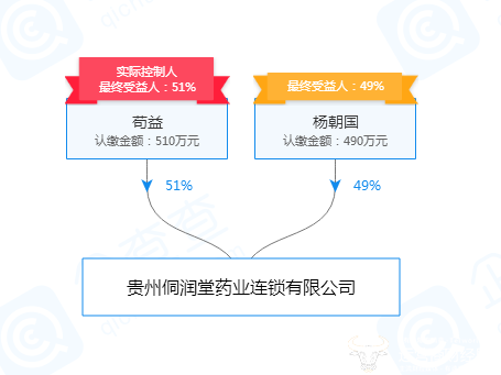 运营商财经网在企查查上查询发现,贵州侗润堂药业的法人代表是杨朝国,占据49%股份,旗下有63家关联企业,苟益作为实际控制人占51%的股份。