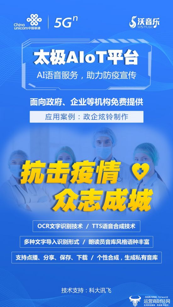 为使广大用户全面了解疫情防控知识、增强防控意识、提升防控能力,近日联通在线沃音乐太极AI平台推出抗疫公益音频DIY制作功能,面向政府企事业单位等机构提供5G彩铃免费定制及批量设置服务,打通防疫宣传“最后一米”,让疫情防控宣传不留死角。
