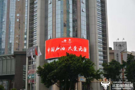 近日,在北京、上海、广州、深圳、成都、天津、青岛7个城市的12个地标建筑的户外大屏上,出现了“中国加油 大爱无疆” 的标语画面,在这万众一心、全民战“疫”的关键时刻,让人倍感温暖和鼓舞。