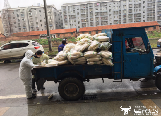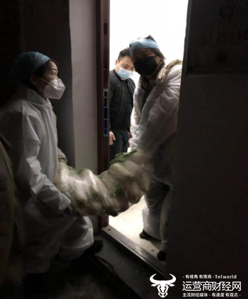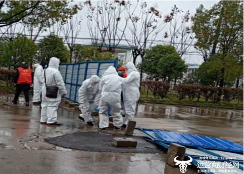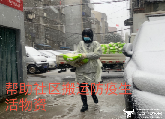 黄先武等人正在船厂社区搬运防疫生活物资