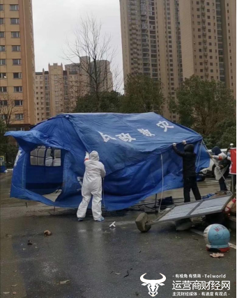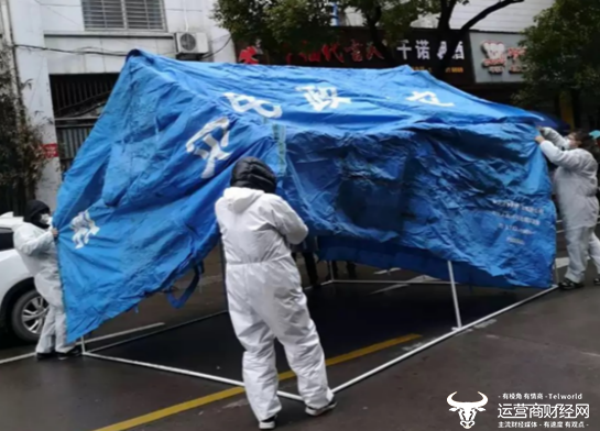 干河船厂社区防疫工作队正在搭帐篷