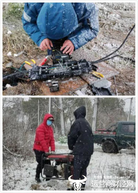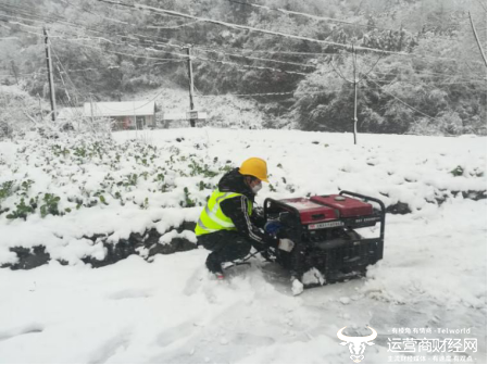 等到达故障所在村,一行人发现村口封路,车辆无法驶入。时间不等人!廖冰和同行的维修员抬起200斤重的油机,在风雪中徒步前近3公里,终于到达基站,并顺利完成抢修。纵然风雪扑面,他们一心只想着尽快恢复基站通信。