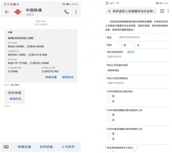 在疫情防控期间,联通在线各项信息业务不断能力叠加、迭代升级,最大程度上配合各级政府进行防控登记等事宜的管理,助力打赢防“疫”战!