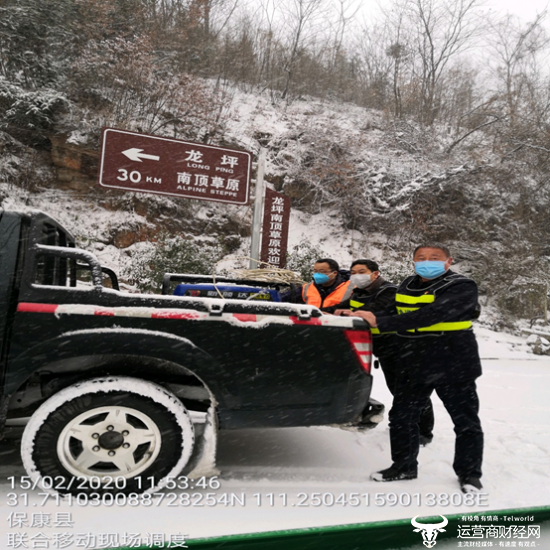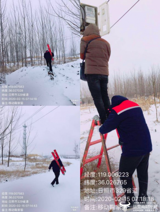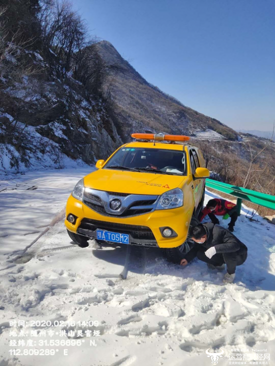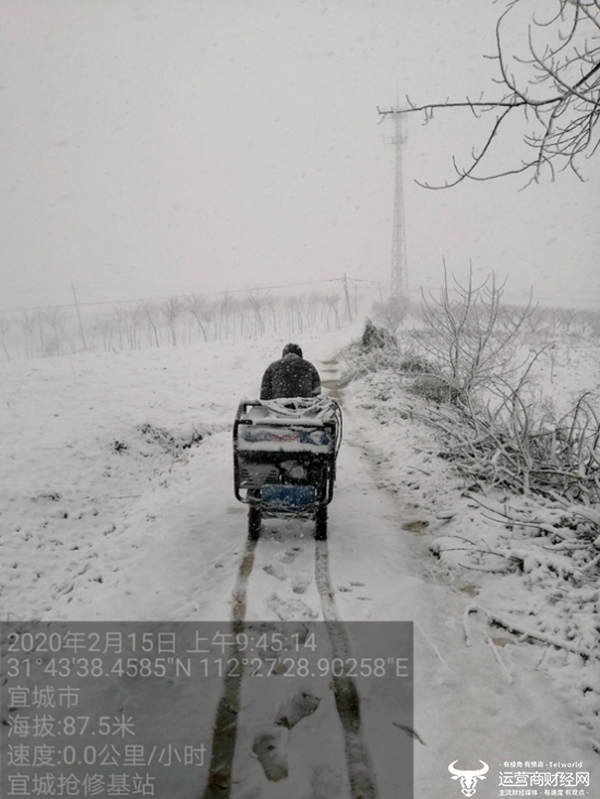在襄阳,15日上午,大雪纷飞。在前往宜城市上湾基站途中,因交通管制,一线代维人员朱小勇用翻斗车拖着油机,前去为基站发电保障畅通。16日上午,枣阳一线代维人员王志强多方协调通过十道疫情防控关卡,赶赴熊集仁和故障基站,尽管手和脸已经冻僵,但是顾不上歇息,第一时间为基站发电,保障了基站畅通。
