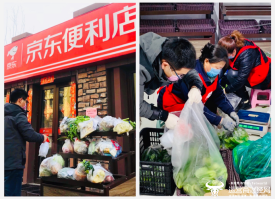 济南的一家京东便利店,将蔬菜放置在指定位置,居民分时领取