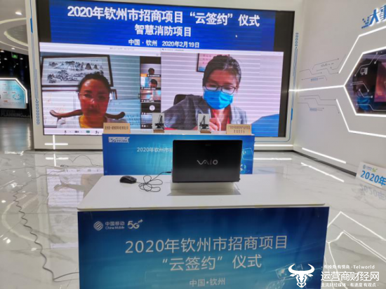2月19日,广西钦州市首次利用5G技术对近期已洽谈成熟的项目进行“云签约”仪式,爱立信及广西移动钦州分公司、广西电信钦州分公司携手,助力此次签约顺利完成。