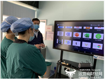 “红区”是隔离病房的别称,医护人员在这里与疫魔正面交锋,守护感染患者生命。广东移动5G远程医疗协作系统由协作触控一体机、移动会诊推车以及专用医疗平板电脑组成。移动会诊推车和专用医疗平板电脑供“红区”内的医护人员使用,会诊专家不需要进入“红区”,也能通过协作触控一体机实时与“红区”内人员进行视频交流,查看病人的各项身体指标情况,指导提供更有针对性的治疗方案。