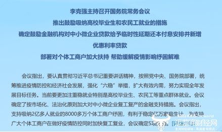 为了保障复工复产顺利开展,国家多部门加大政策调节力度,助力企业复工复产。为8000多万个体工商户纾困,国务院常务会议确定,从3月1日至5月底,免征湖北境内小规模纳税人增值税,其他地区征收率由3%降至1%。鼓励各地通过减免城镇土地使用税等,支持出租方减免个体工商户租金。工信部已重点聚焦了医疗器械、农资、乳制品等产业,梳理了产业链配套企业名单,对企业一对一采取措施,协助复工复产。