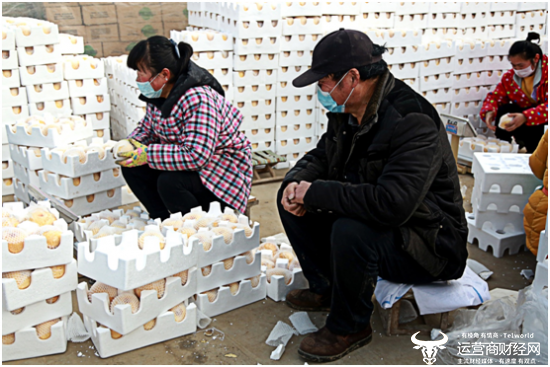 ▲忙起来的砀山当地果农,在打包酥梨过程中,难掩眼里的笑意。