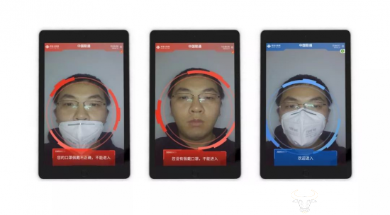 如何提升复工后的通行安全成了摆在许多企业、园区面前的头等大事,疫情期间需避免通行人员因摘下口罩所面临的交叉感染风险。针对佩戴口罩人员如何完成人脸识别的问题,联通大数据推出了AI助防-疫情合规人脸门禁产品。