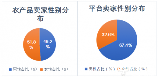 ▲ (左图)2019年拼多多农产品店铺主性别分布。(右图)2019年拼多多平台卖家性别分布。图表来源: 人民大学中国扶贫研究院《新电商与新女性——互联网农业中女性经营主体参与度报告》。