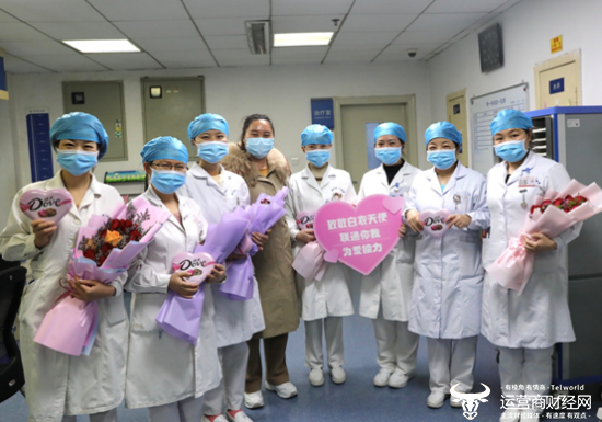 看到女医护人员手上的鲜花和脸上的笑容,我们知道,“为爱接力”不再只是一句口号,而是成为这个节日里,数万名网友与湖南联通一起为英雄们送上的的“最美勋章”