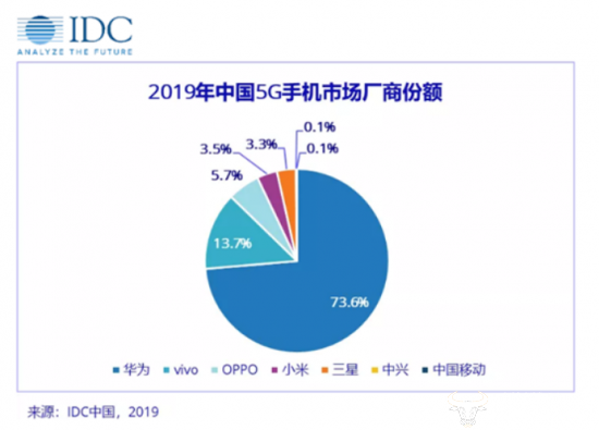 放眼2019年中国5G手机发展,据市场调研机构IDC报告显示,2019年内中国市场5G手机出货量约930万台,其中73.6%的市场份额来自华为,vivo在中国市场5G手机出货量占13.7%仅次于华为位居第二,超越第三名8%。