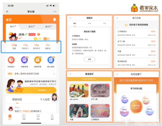 (“最美课本”家长端功能展示)