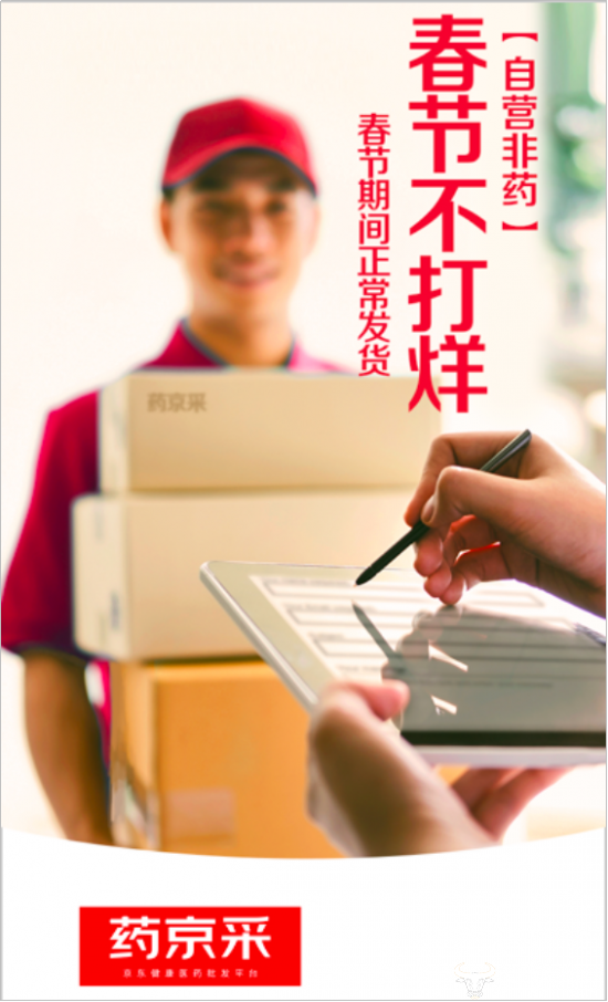 凭借京东打造的新一代基础设施——供应链能力,药京采协调上游医药工业企业资源为药京采独家供货,并利用京东物流优势,保障防护物资流通,如期送到药店、诊所手中。此外,药京采还向入驻平台的药品批发企业发出了“复工倡议”。