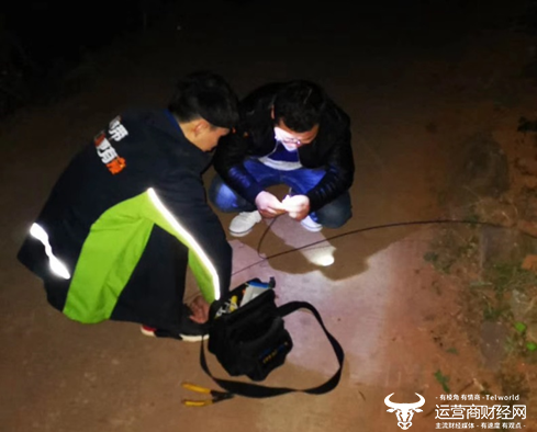 中国电信成都分公司员工深夜为用户安装宽带网络