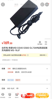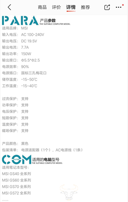 据运营商财经网查询发现,当前这款电源适配器还在京东销售,并且显示可以适配的笔记本有:MSI GS40全系列、MSIGS60全系列、MSI GS70全系列、MSIGS72全系列。
