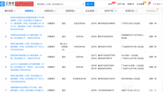 在企查查的法律诉讼一栏中,运营商财经网发现,近些年曼秀雷敦的合同纠纷可不少,山东天士力医药有限公司、国家控股济南有限公司、济南罗欣医药有限公司等均在列。