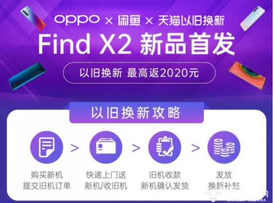 OPPO Find X2系列新品参与以旧换新活动,消费者在OPPO以旧换新活动页面回收闲置手机,并在OPPO官方旗舰店购买OPPO Find X2系列手机,可在回收成交价基础上再获