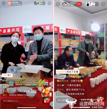 ▲在直播中,县长张庆国与朱一旦一同为消费者的快递打包。农户定制的专用的鸡蛋快递箱和稻糠保护,能让鸡蛋安全运送到消费者手中。