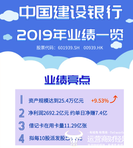 3月29日消息,建设银行晚间披露,2019年全年实现净利润2667.33亿元,约单日净赚7.3亿。上年同期为2546.55亿元,同比增长4.74%。