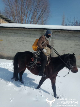 中国电信小哥努尔别尔根.努尔旦艾力急切骑马赶往村民家安装设备