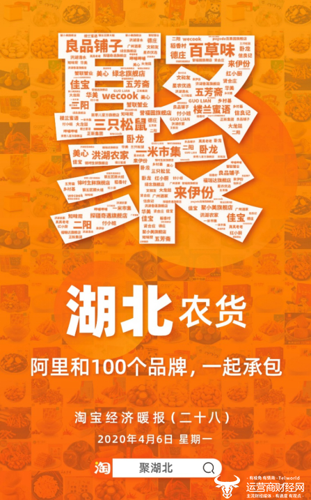 据了解,在淘宝上搜索“聚湖北”,就可以直达聚划算的主题销售会场,蔡林记热干面、良品铺子的卤味、秭归的脐橙、潜江的小龙虾,人们想念的湖北味道,在淘宝上回来了。微博话题“我为湖北胖三斤”更是吸引了数千万网友关注,网友纷纷表示,努力当吃货,就是给湖北经济恢复做贡献。