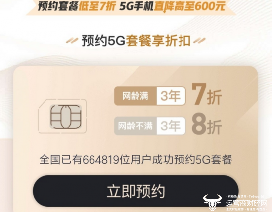 去年10月底,三大运营商在预约5G套餐的官方页面上纷纷对老用户提供了办理套餐的优惠折扣。根据不同的网龄享受7-8折的优惠。除了5G套餐优惠以外,三大运营商还为用户提供了5G手机购机优惠,众多5G机型均有一定幅度的优惠。