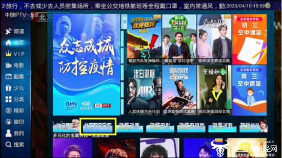 据悉,在北京市教委统筹安排下,为加快建立与疫情相适应的教育教学秩序,有序推进疫情条件下的教育教学工作,确保基本完成 2020 年春季学期教育教学任务,从4月13日起,北京春季学期进入新阶段——中小学线上学科教学启动。北京市教委通过统筹学生居家学习时间与在校学习时间、统筹线上线下教学方式、统筹学生自主学习与集体教学,分阶段、有计划地推进本学期课程教学工作,实现“线上线下”无缝衔接,建立与疫情防控常态化相适应的课程教学机制。北京电信第一时间响应教学计划,对天翼高清北京IPTV同步进行内容调整。