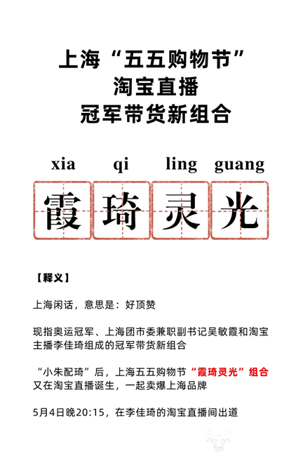 5月4日晚,奥运冠军、上海团市委兼职副书记吴敏霞和淘宝主播李佳琦组成“霞琦灵光”组合,为上海品牌带货,短短20分钟就吸引了300万网友围观,这就是上海“五五购物节”新消费的力量!