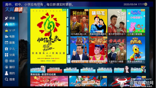疫情期间,天翼高清还联合学而思、黄冈学霸、新东方等教育行业领军品牌,将同步课程搬上天翼高清大屏,免费向全国广大中小学生提供,助力学子停课不停学。天翼高清参与此次直播,彰显了中国电信的社会责任和国企担当,让我们一起传递直抵人心的温暖力量,为未来歌唱。