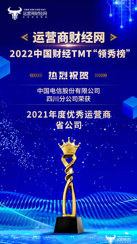 以下为 四川电信获得“2021年度优秀运营商省公司”荣誉奖项。