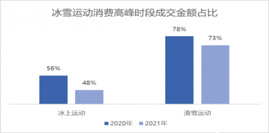 但是,冬季仍然是冰雪运动,特别是滑雪运动的主要季节。京东消费情况显示,滑雪运动消费在冰雪消费高峰时段(11月、12月和1月)的占比超过7成,但占比呈现逐年下降的趋势,更多室内场馆的建设和冰雪运动旅行,让爱好者们可以跨越季节的限制。
