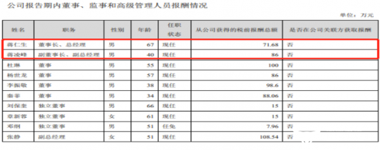 此外,运营商财经注意到,根据智飞生物发布的2020年年度报告显示,蒋仁生从公司获得的税前报酬总额为71.68万元,蒋凌峰则是86万元,在公布薪酬的高管中,并不算高。值得注意的是,副总经理蒋喜生是董事长蒋仁生的弟弟。