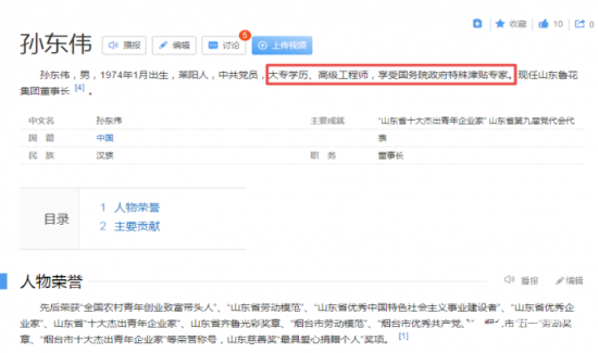 百度百科显示,孙东伟曾先后荣获“全国农村青年创业致富带头人”、“山东省劳动模范”、山东省“十大杰出青年企业家”、“烟台市劳动模范”等,以鲁花集团的贡献来看,孙东伟也确实配得上这些荣誉称号。