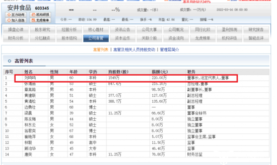 据东方财富网披露,目前刘鸣鸣的薪酬为220万,持股数为1549万。在2021年发布的《胡润百富榜》中,刘鸣鸣以33亿元的财富排名第1999位。