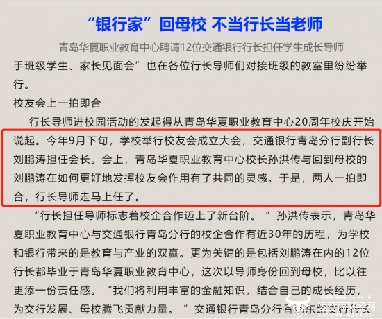 可见,刘鹏涛在交行青岛分行担任副行长期间,不仅自己掌握了非常多的业务知识,也为公众提供了不少贴心服务。2019年5月左右,刘鹏涛被调到交行山东省分行担任副行长,负责公司与机构业务板块和同业与市场业务板块。