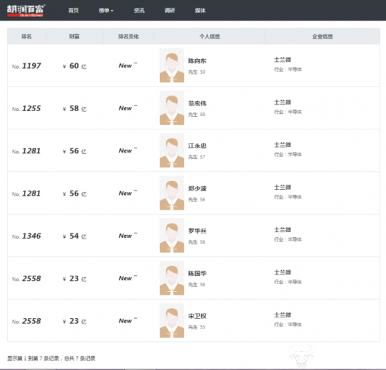 令人称奇的是,除了陈向东之外,士兰微的另外六位创始人范伟宏、江忠永、郑少波、罗华兵、陈国华、宋卫权也一起登上了《2021年胡润百富榜》,财富分别显示为58亿、56亿、56亿、54亿、23亿、23亿,非常少见。