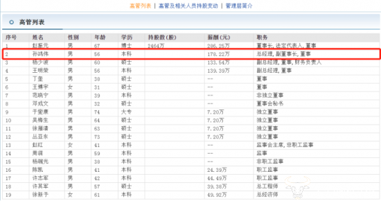 公司官网显示,孙鸿伟出生于1966年9月,是本科学历,但具体的毕业院校查不到,另外他还是正高级经济师。