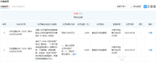 运营商财经网了解到,2019年4月,钟薛高因宣传某产品只选用特级红提,而产品检验报告显示该红葡萄干规格等级为散装/一级,构成虚假宣传,被罚款6000元。同年8月,钟薛高又因产品宣传“不加一滴水、纯纯牛乳香”等内容,经核实,该款冰激凌产品配料表中明确含有饮用水成分,被罚款3000元。