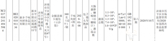 同时,在2020年10月14日,济南历下区市场监督管理局官网上发布了《关于不合格食品风险控制情况的通告(第五期)》,千味央厨的全资子公司新乡千味央厨食品有限公司生产的金猴送福卡通包(豆沙馅)菌落总数也被检验出不合格。