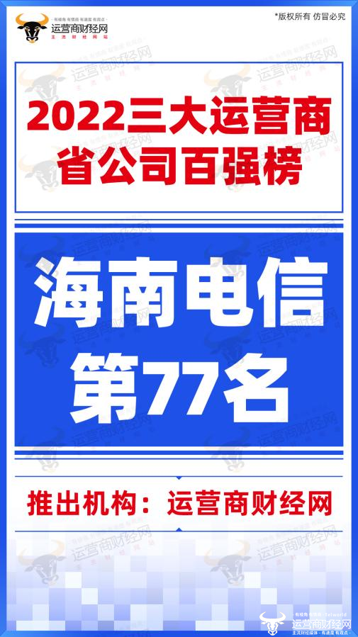 近日,在“2022中国三大运营商省公司收入百强榜”中,海南电信荣居第77名,这样的排名虽不靠前,但对于海南电信而言已是超出想象,表现还行。
