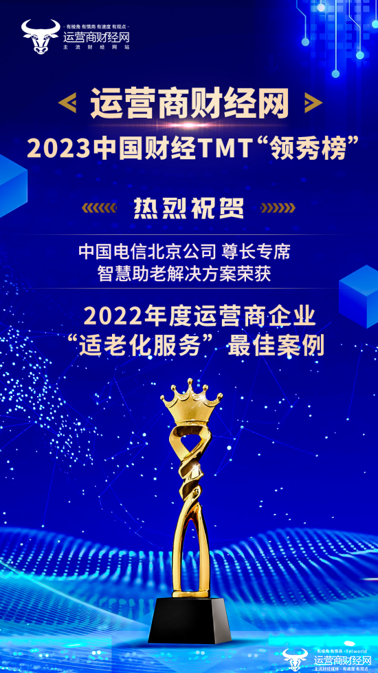 祝贺 中国电信北京公司尊长专席智慧助老解决方案荣获“2022年度运营商企业“适老化服务”案例”