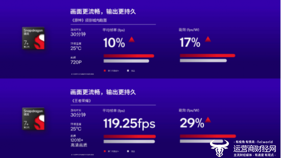 AI性能也比前代产品翻倍,第二代骁龙7+支持了硬件级别的高通传感器中枢,对于游戏的AI超分和视频的超分做出了支持。