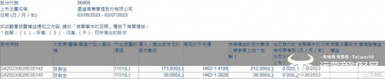 值得注意的是,根据联交所最新权益披露资料显示,2023年6月26日-6月27日,星盛商业获执行董事陈群生在场内以每股均价1.3826-1.4188港元合计增持21.2万股,涉资约26.69万港元。