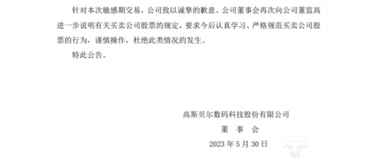 但在1个月后,高斯贝尔还是就这次敏感期交易发布了致歉公告。