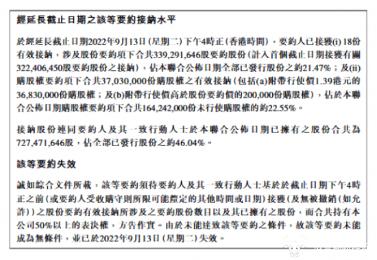 直至9月13日,佐丹奴发布公告称,由于未能达致接纳条件,该等要约未能成为无条件,并于当日失效。