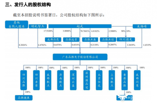 值得关注的是,就在前不久,品胜电子递交了招股说明书,拟在深交所主板上市。通过招股书能发现,品胜电子是一家“夫妻店”,因为招股书显示,截至本招股说明书签署日,公司控股股东为赵武,实际控制人为赵武和吴炜崝夫妇。
