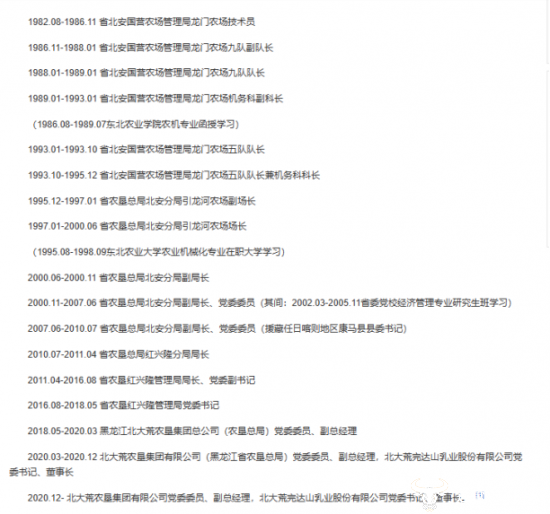 而从2018年起,王贵就开始担任北大荒农垦集团有限公司(黑龙江省农垦总局)的副总经理,以及完达山的董事长了。