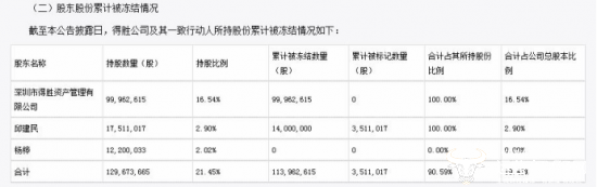 值得注意的是,在今年4月29日,得润电子公告公司股东股份被冻结情况。截至2023年4月29日,得润电子控股股东深圳市得胜资产管理有限公司及其一致行动人被冻结股份数量占其所持公司股份数量比例超过90%。其中,得胜公司持有该公司9996.26万股,占上市公司总股本的16.54%,100%的股份被冻结;邱建民持股数为17,511,017,占上市公司总股本的2.90%,被冻结数量为14,000,000。